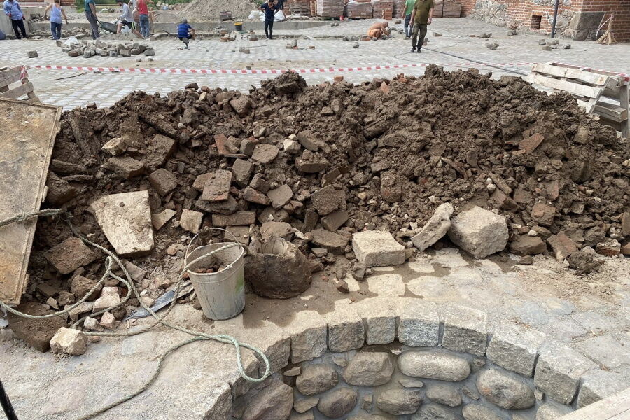 Павликов добавил, что во время чистки колодца, засыпанного в советское время, никаких артефактов обнаружить не удалось. Это подтверждает и руководитель компании «Строймонтажсервис» Валерий Щербатых, который осуществляет авторский и технический надзор над работами в замке.