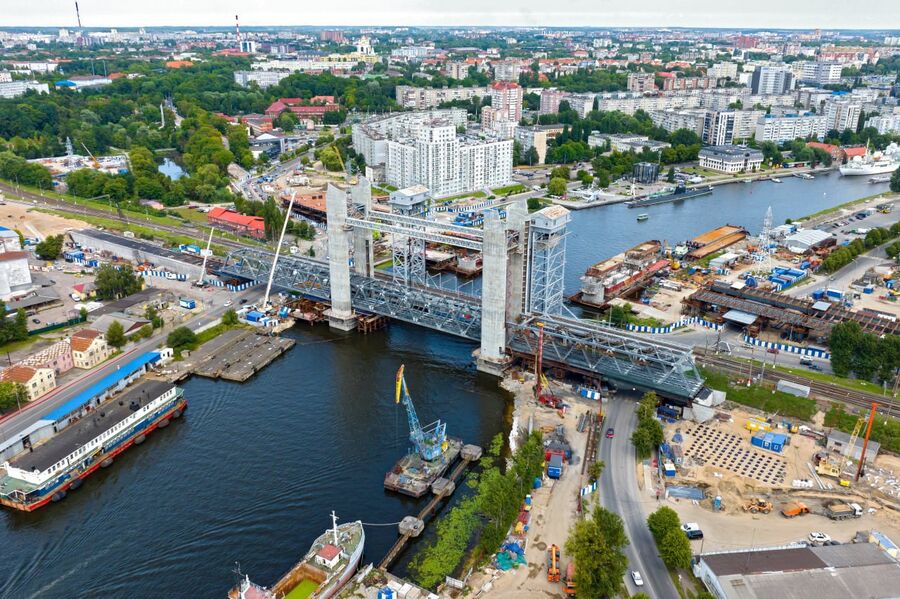 Ведомство отметило, что строители установили пролёт железнодорожного моста через Преголю. Следующий этап монтажа конструкции связан с включением её в систему вертикально-подъёмного механизма для обеспечения судоходства.