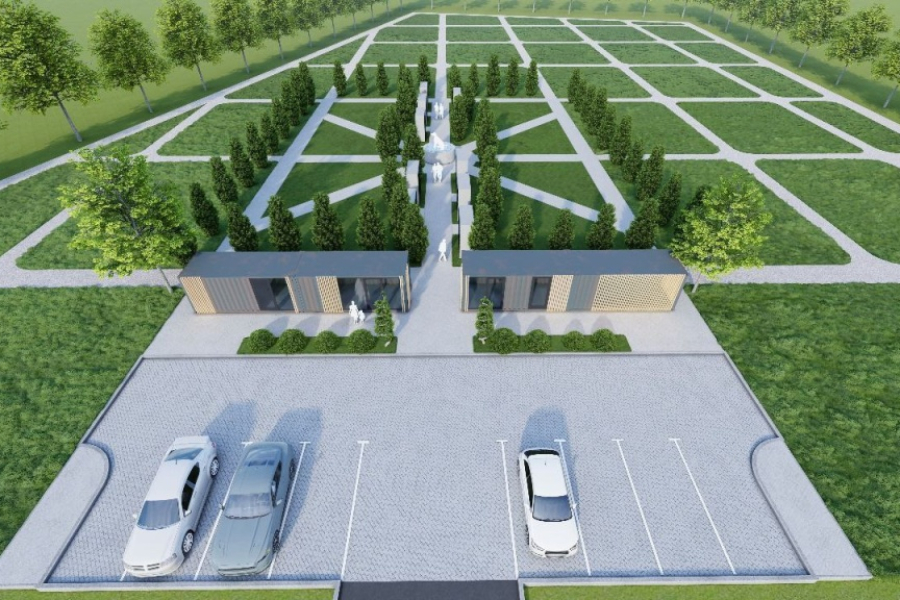 Участок располагается недалеко от посёлка Коврово. Помимо кладбища, там будет ещё и колумбарий. Проектом предусмотрены вспомогательные помещения, траурный зал и озеленение территории.