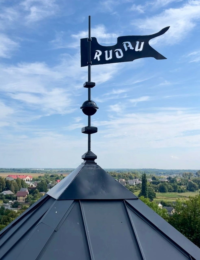 Новую крышу венчает шпиль с флюгером в виде флага с довоенным названием населенного пункта. Кроме того, на территории кирхи появился информационный щит, где описана 770-летняя история Рудау.