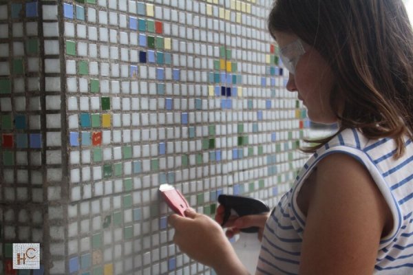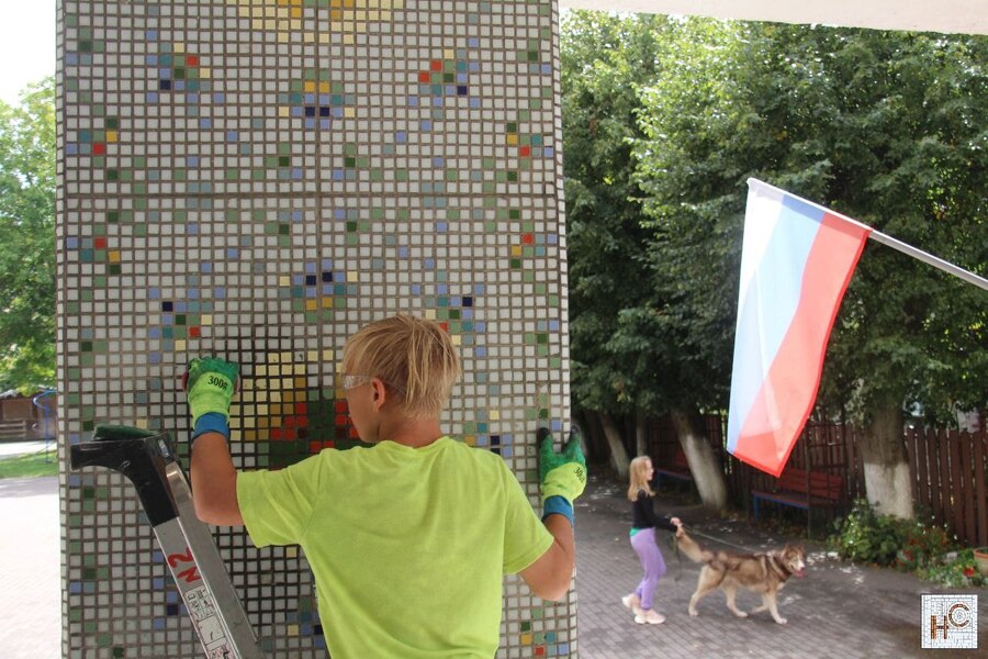 Волонтёры зеленоградского детского центра «Наш дом» и проекта «Наследие стен» очистили и привели в порядок мозаичное оформление входной группы здания центра. Об этом сообщается в телеграм-канале «Наследие стен».