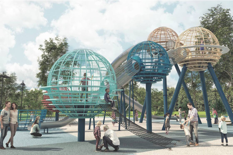 На территории площадью 1991 кв. метров планируют разместить игровой комплекс «Планеты» с подсветкой, уличный гироскоп, площадку «Солнечная система», канатную дорогу длиной более 20 метров, комплекс для развития координации движений «Волна», центрифугу, комплекс переговорных труб, качели, карусели, песочницу и прочие игровые элементы. Проект благоустройства парка прошёл госэкспертизу в конце июля.