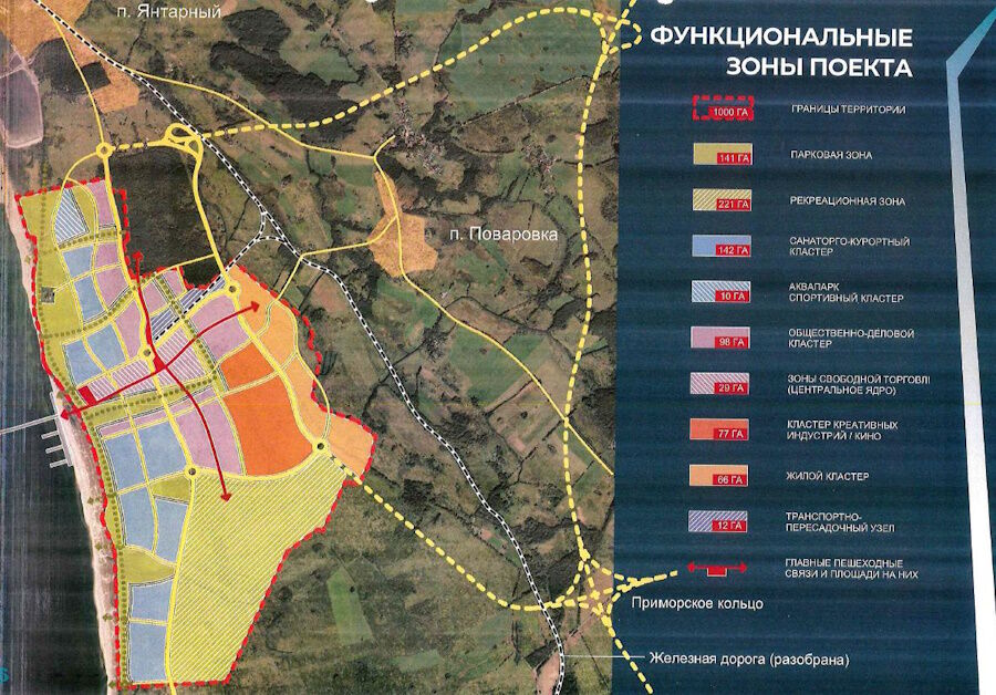 В январе администрация Зеленоградского округа представила проект, по которому размежёванная территория поделена на две зоны: общественно-деловую и курортную — с площадями в 319,54 и 160,54 га соответственно.
