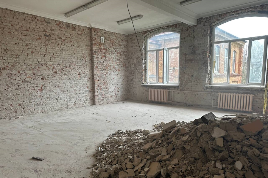 В здании полностью заменили сантехнику и инженерные коммуникации, переложили перекрытия между этажами. Также выполнена перепланировка, благодаря которой нашлось место актовому залу, большому холлу и дополнительным туалетам.