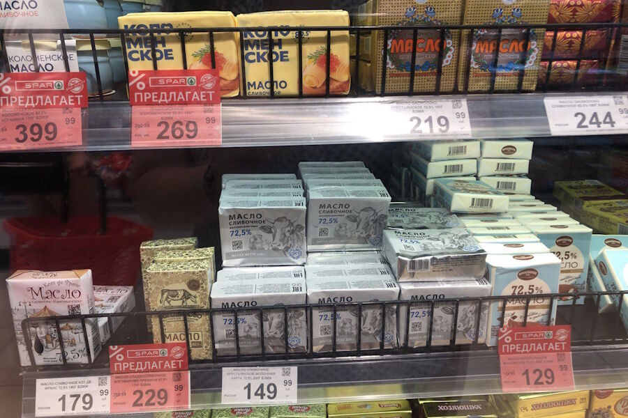 «Была в воскресенье в магазине и сегодня: от цены на масло сливочное [обалдела], если не сказать другое слово. За три дня + 56 рублей», — написала одна из посетительниц страницы «Нового Калининграда в соцсети «ВКонтакте». «Я тоже заметила. <...> Масло было 165, а через несколько дней 205 — это же, в этом же магазине», — ответила другая жительница региона.