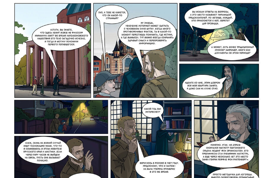 Комикс нарисован на трёх картинках и создан в рамках туристского проекта «Серебряное ожерелье». По сюжету, археолог и его сын путешествуют по городам Северо-Западного федерального округа России в поисках «загадочного предмета». Герои посетили уже шесть мест и в седьмой части повести прибыли в Калининград. На острове Канта они встретили историка, который показался им странным, а позже отправились с ним к стенам замка Тапиау, чтобы откопать «тайник».