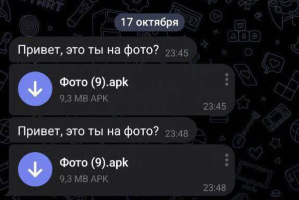 Ведомтво опубликовало скриншот переписки в мессенджере. На нём видно, что инициатор диалога присылает собеседнику файл с названием «Фото» и расширением .apk, а также спрашивает, он ли это на фото. При этом отправитель делает это дважды за три минуты.
