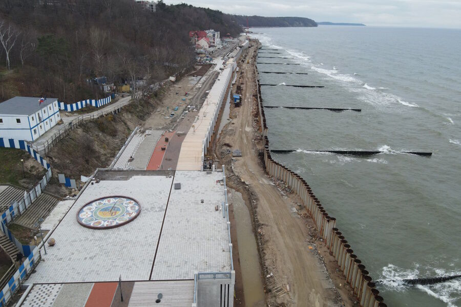 Подрядчику, занимающемуся реконструкцией старого променада в Светлогорске, осталось выполнить около 30% работ. Такие данные вечером 2 декабря опубликовал официальный паблик «Балтберегозащиты».