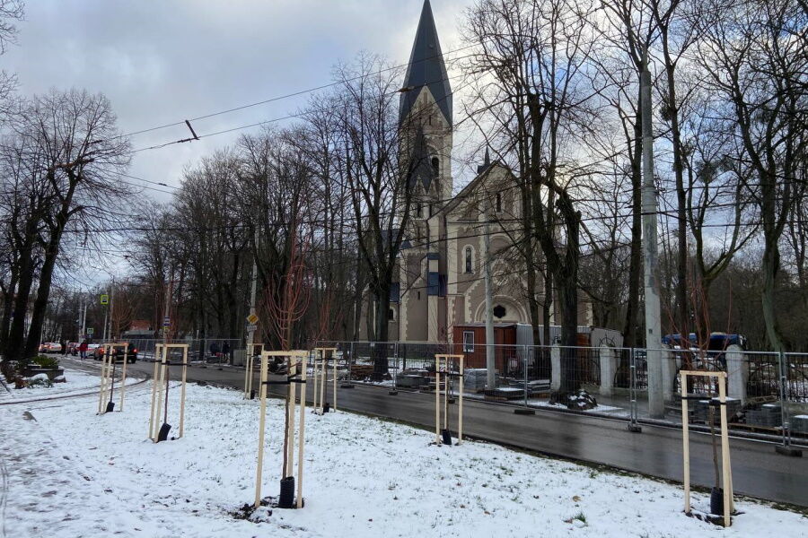 В Калининграде в начале проспекта Победы, напротив филиала музея имени Пушкина, высадили саженцы деревьев. О том, что деревья посажены там, где ранее проходили трамвайные пути, «Новому Калининграду» сообщили очевидцы, приславшие фото высадки, сделанное в минувшие выходные.