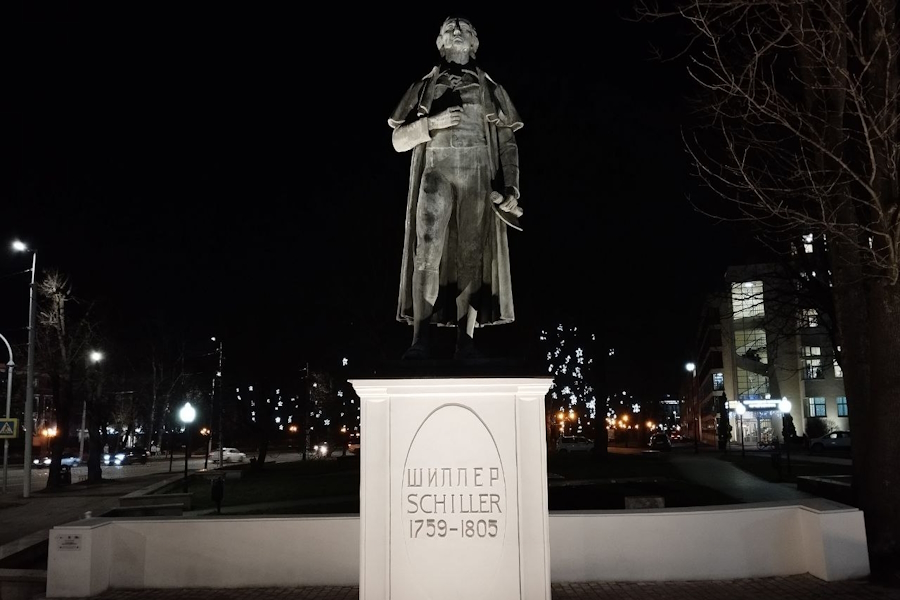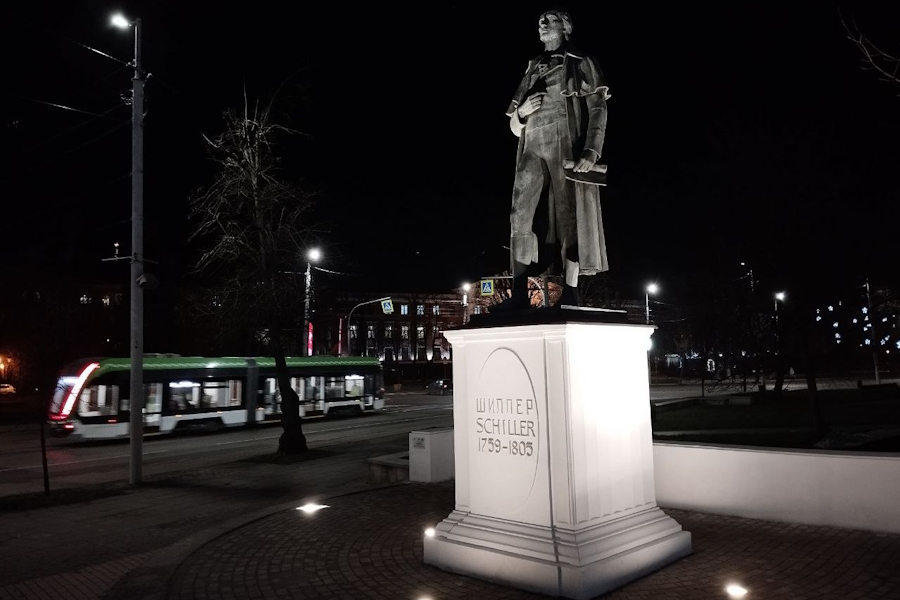 Памятник немецкому поэту, философу и драматургу Фридриху Шиллеру, расположенный на проспекте Мира в Калининграде, оборудовали архитектурной подсветкой. Об этом сообщил корреспондент «Нового Калининграда».