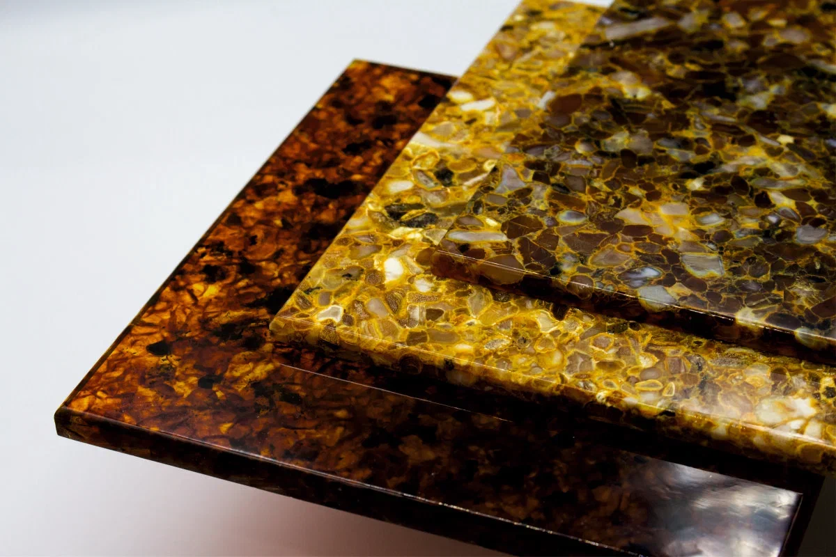 Плитку можно использовать при оформлении витражей и как элемент декора, в том числе в помещениях с высокой влажностью и температурой до +80°C. Она подходит для хаммама и русской бани. При производстве янтарной плитки использовали камень ситовой фракции. Уточняют, что такое название получает янтарь, который после добычи и очистки прошёл через систему сит определённого размера. В результате такой механической сортировки отобрали кусочки разного камня величиной от 4 до 8 мм, после чего янтарь нагрели при высокой температуре под давлением. Эта технология позволила превратить отдельные фрагменты камня в цельную поверхность и образовать при этом сочетание всех возможных оттенков балтийского янтаря, которых сегодня насчитывают более двухсот.