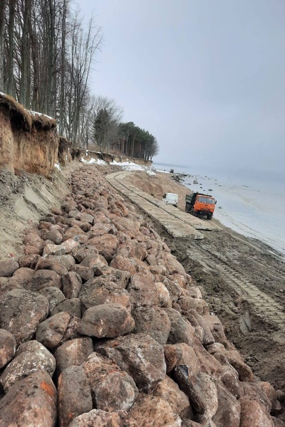 Берегоукрепительные работы полностью завершены на восточном и западном участках берега общей протяженностью 1,4 км. На центральном участке было укреплено 700 из 896 метров берега.