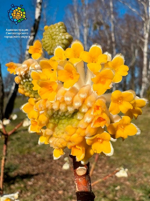 В Светлогорске в городском парке зацвела Эджвортия золотистоцветковая. Об этом сообщают власти муниципалитета на странице «ВКонтакте».