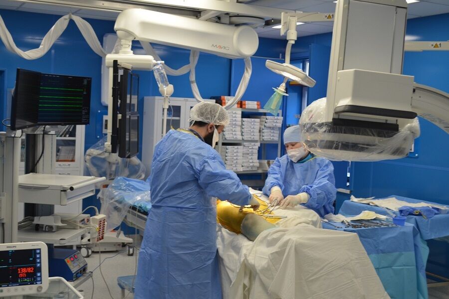 Как пояснил заведующий отделением сердечно-сосудистой хирургии Алексей Шатравка, такое вмешательство сочетает в себе классический «открытый» этап операции (тромбэктомию) и выполняемую сразу после него эндоваскулярную операцию. «Уникальность операции заключалась в том, что оба этапа проходили одновременно, — рассказал заведующий отделением рентгенохирургических методов диагностики и лечения Игорь Патлай. — В практике Областной клинической больницы гибридные операции выполняются уже несколько лет, однако ее ювелирность позволяет спасти людей от тяжелейших последствий».