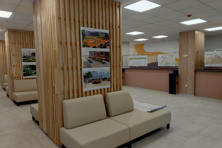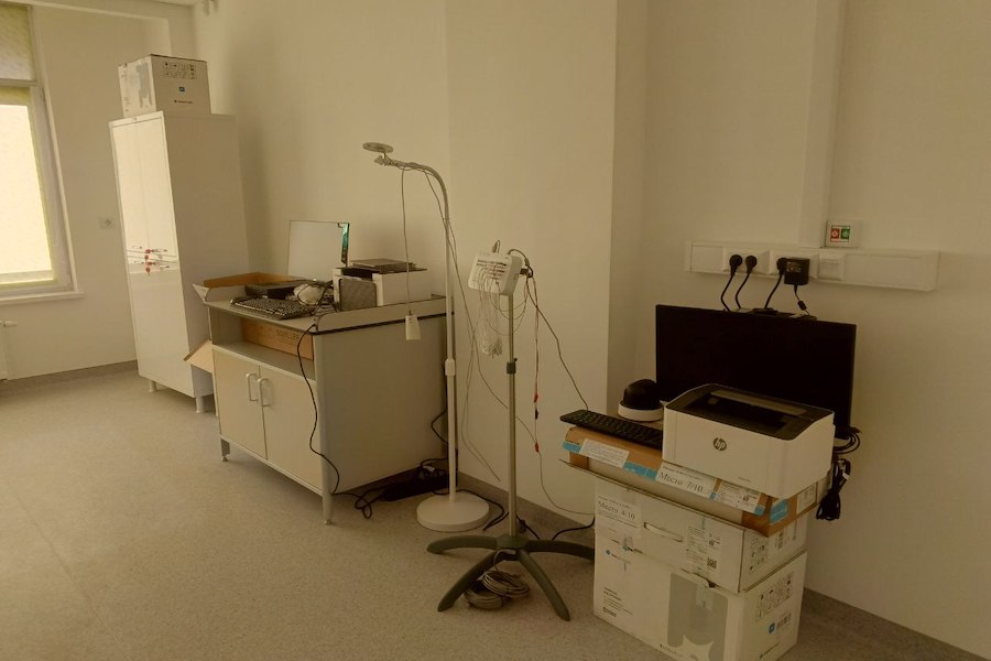 Поликлиника занимает два этажа комплекса, имеет отдельный вход и лифт, некоторые кабинеты уже оснащены оборудованием.