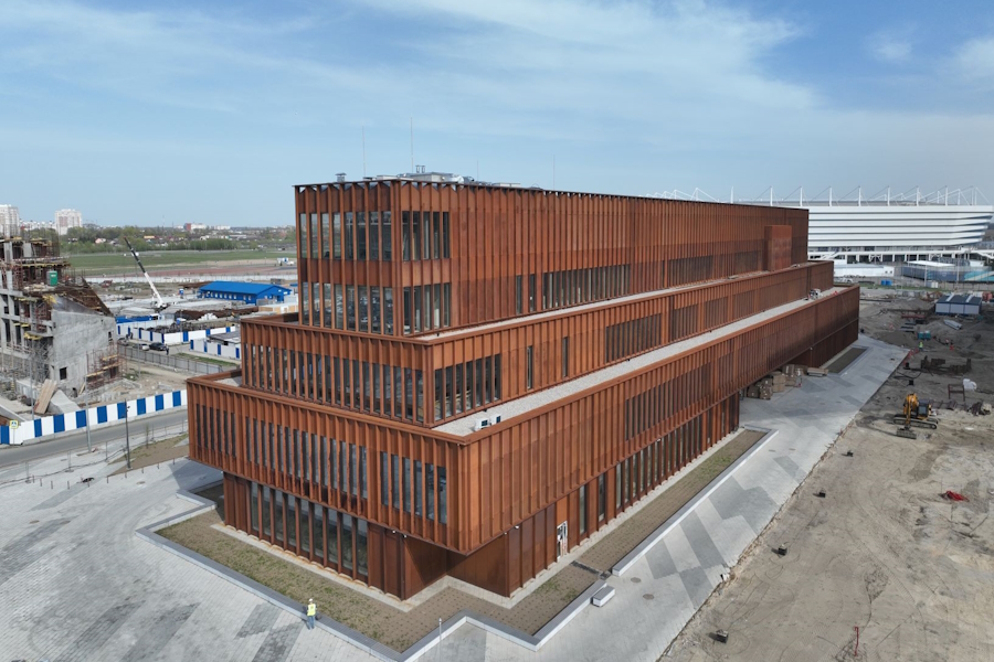 В марте строители завершили возведение несущего каркаса филиала Большого театра на Октябрьском острове. Здание будет включать три функциональные зоны — общественное пространство, сценический комплекс и служебные помещения. Два зрительных зала обеспечат вместимость 950 и 300 мест соответственно.