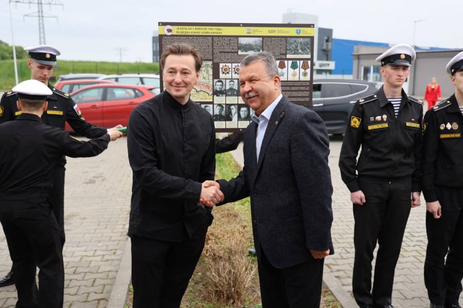 Актёр Сергей Безруков открыл информационный стенд в посёлке Шоссейное. Об этом сообщила администрация Калининграда в своём телеграм-канале.