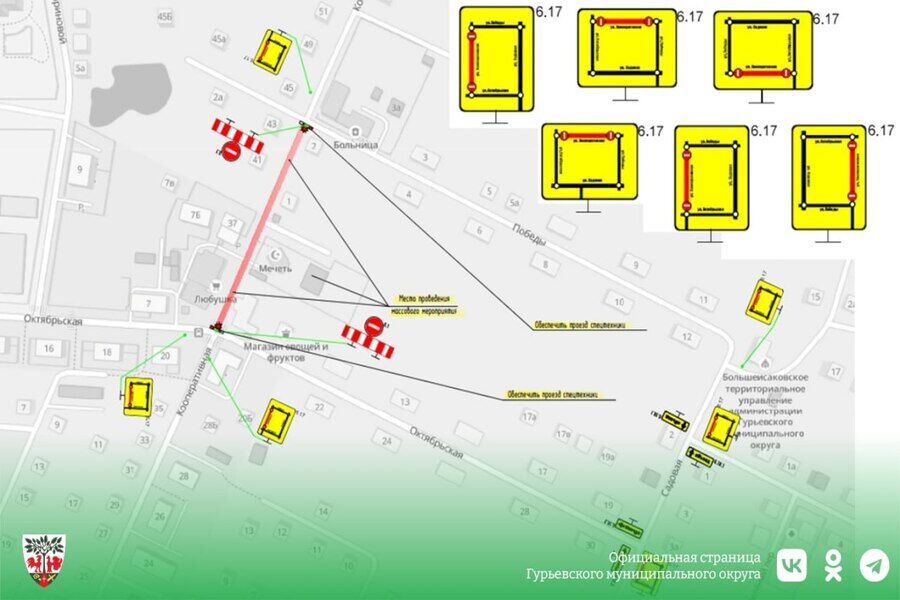 Движение будет перекрыто по ул. Кооперативной на участке от ул. Октябрьская до ул. Победы с 06:00 до 08:30. «Ожидается большое количество участников, поэтому на дорогах возможны заторы, — предупреждают власти муниципалитета. — Убедительная просьба к автовладельцам и жителям поселка Большое Исаково заранее планировать маршруты и время передвижения на личном и общественном автотранспорте, прокладывать маршрут, учитывая схему движения».