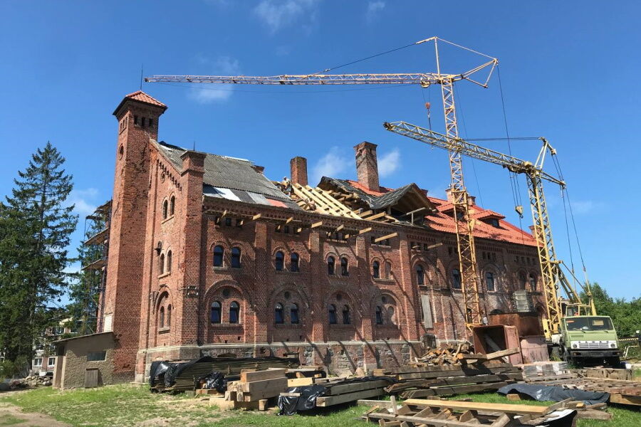 В конце прошлой недели в паблике «Музей „Старая немецкая школа Вальдвинкель“» появились фото и видео процесса монтажа откосов и стропильной конструкции над солодовней.