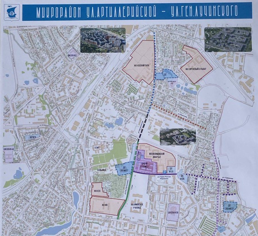 «Это второй этап улицы Лучинского, — пояснила сити-менеджер, указав на карту. — Нам нужно этот участок дороги выполнить в обязательном порядке. Почему? Потому что, видите, огромный жилищный комплекс? (ЖК „Невский парк“ на ул. Невского и Арсенальной — прим. „Нового Калининграда“). Дети, которые здесь живут, как будут добираться до школы? Они будут добираться пешком, они должны добираться по обустроенной улично-дорожной сети. Мы говорим о том, что мы делаем синхронизацию работ по строительству объектов образования и улично-дорожной сети».