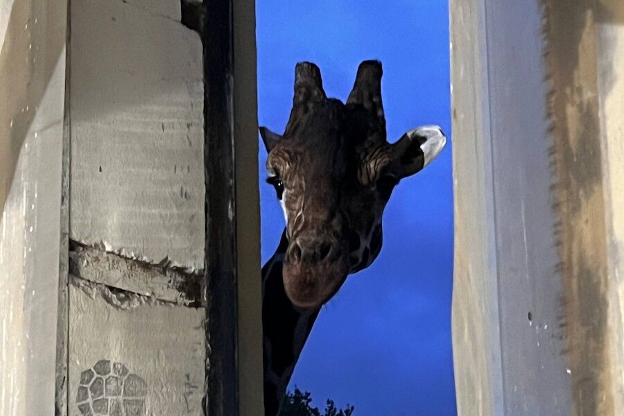 В Калининградском зоопарке жирафы Мэру и Табо вынуждены ночевать на улице из-за затянувшейся реконструкции их вольера. О том, что подрядчики стали работать по ночам, а животные заглядывают к ним с ревизией и немым вопросом «ну когда же я вернусь домой», написала в своём телеграм-канале директор зоопарка Светлана Соколова.