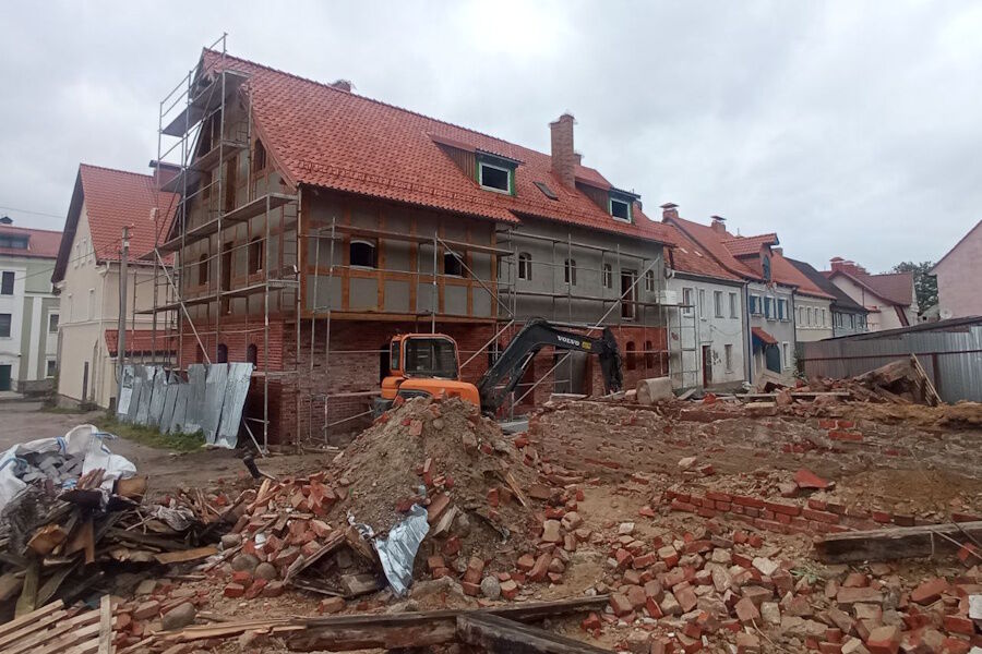 В Железнодорожном Правдинского района завершилось восстановление фасада одного из исторических фахверковых складов в центре посёлка. При этом, как сообщили «Новому Калининграду» очевидцы, второй склад подрядчик разобрал до уровня фундамента.