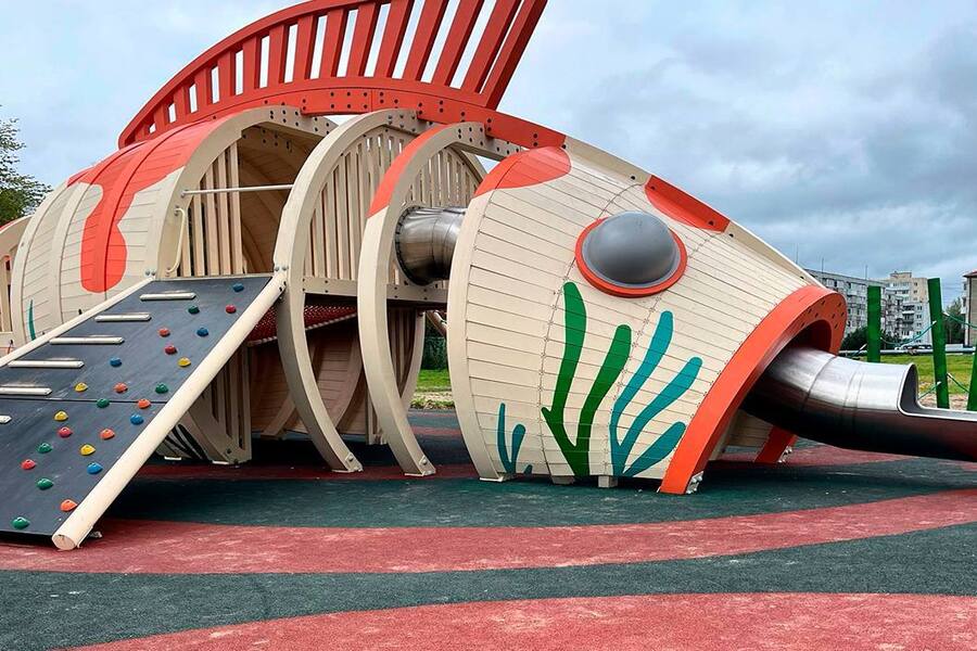 В Светлом на финишную прямую выходят работы по благоустройству детского игрового комплекса «Рыба». Сейчас там завершается укладка резинового покрытия, сообщает администрация округа.