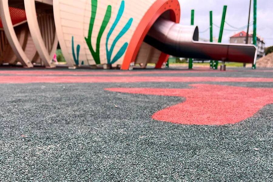 Покрытие должно обеспечить безопасность и комфорт во время игр. Кроме того, вокруг комплекса установили батуты.
