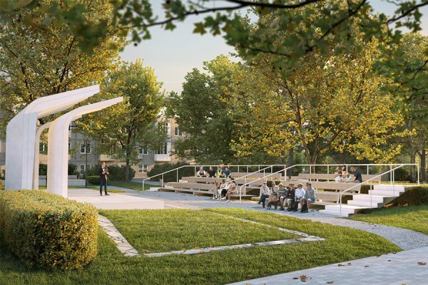 Ранее там располагался жилой квартал, который был уничтожен во время Второй мировой войны. В рамках проекта предлагается обозначить с помощью мощения контуры исторической застройки, а функциональные зоны организовать внутри сложившихся до середины XX века дворовых территорий.