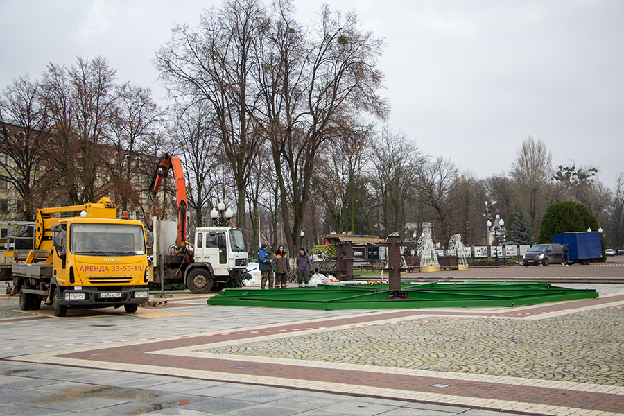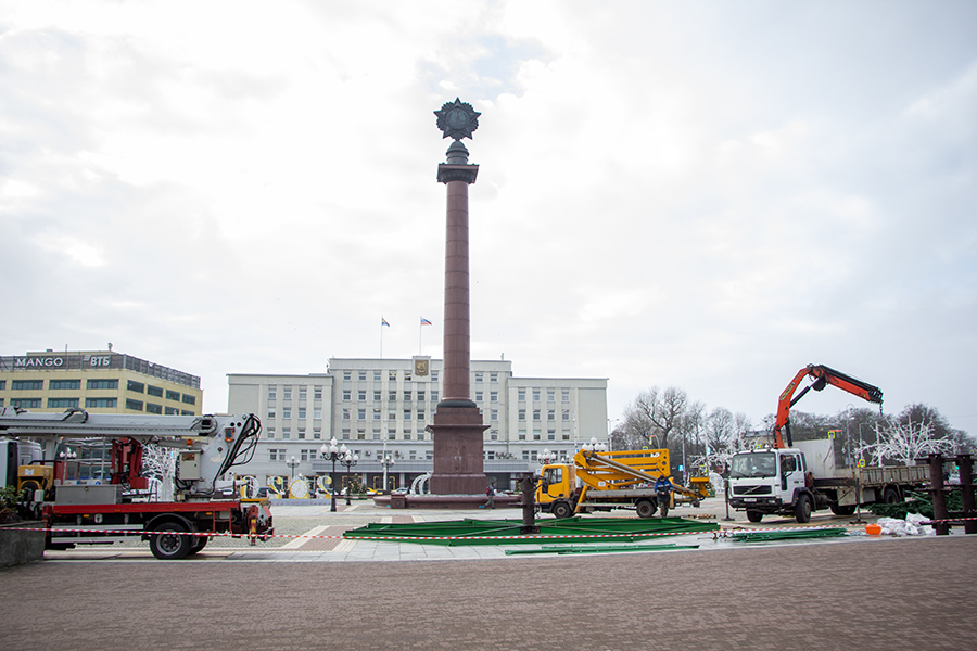 На площади Победы в Калининграде начали устанавливать новую ёлку. Закончить ранее обещали к 10 декабря.