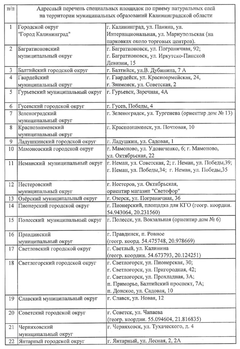 В Калининграде пункты приёма расположены на улицах Панина, Интернациональной и Мариупольской (на парковках около ТЦ) и будут работать до конца января, отметили в пресс-службе. Там также разместили информацию о том, куда можно сдать деревья в других муниципалитетах.