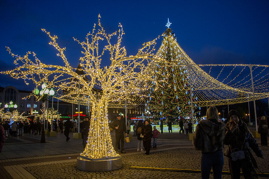 Площадь Победы в Калининграде обещали украсить к Новому году до 12 декабря, однако зажечь огни на ёлке смогли только 15 декабря. По словам главы горадминистрации Елены Дятловой, задержка была связана с конструкцией новой ёлки.