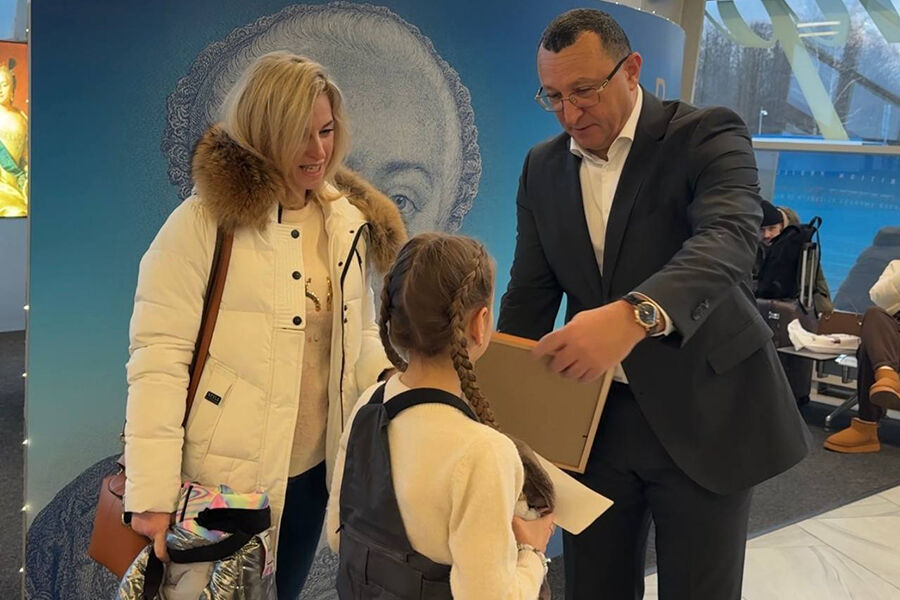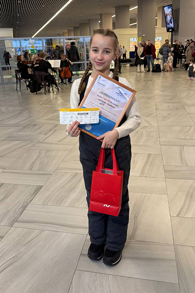 В зоне вылета Дарину и её маму поздравили генеральный директор аэропорта Храброво Александр Корытный и пресс‑секретарь авиакомпании Nordwind Ольга Ваврищук. Юной пассажирке вручили памятные сувениры и сертификат на бесплатное обслуживание в бизнес‑зале аэропорта.
