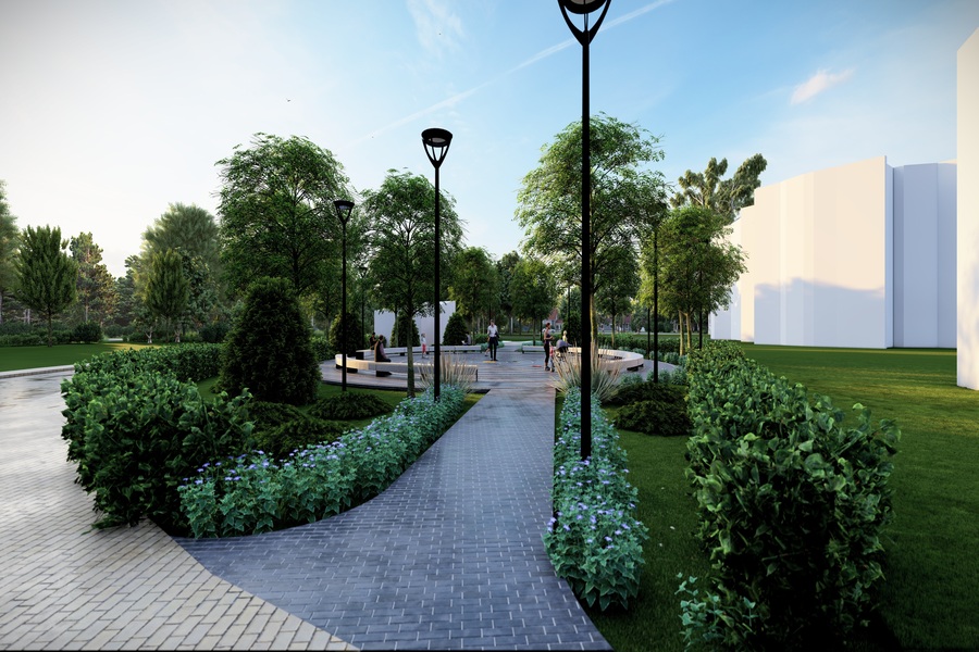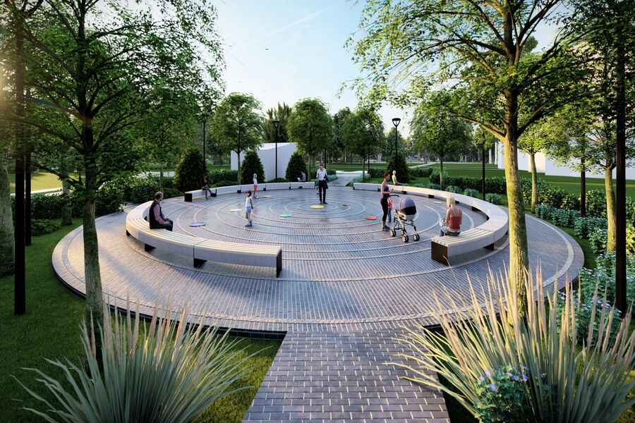 Центральной идеей проекта станет создание многофункционального сквера с просветительским уклоном. Его основой станет интерактивная карта Солнечной системы, интегрированная в мощение центральной площади. Покрытие выполнят в виде концентрических окружностей, символизирующих орбиты планет, с декоративными вставками и подсветкой.