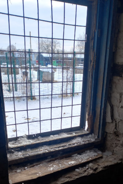 «У собак нет ни одного теплого помещения, все они содержатся в вольерах и будках на улице, в каменном бараке в вольерах, — рассказала Наталья Галяс. — Барак неотапливаемый, часть окон забиты профлистом, часть — выбиты. Температура там уличная, минусовая. В этом бараке были обнаружены собаки в попонах после стерилизации, хотя по правилам они должны содержаться в теплых помещениях, а также щенки и собаки-подростки. Воды и корма нет, остатки воды в тазах замерзли». При этом в административном здании, где располагается руководство центра, тепло.
