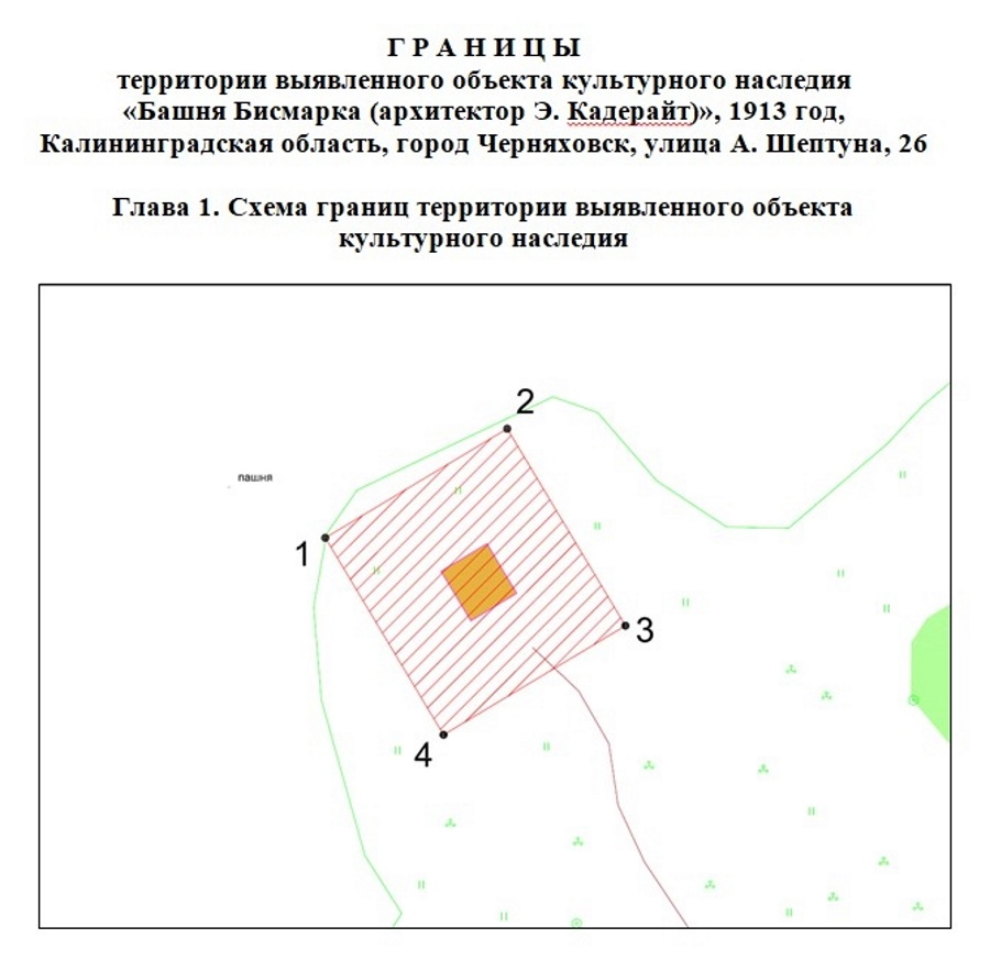«Продолжаем придерживаться темпов прошлого года по нормативному утверждению ключевых инструментов государственной охраны объектов культурного наследия, — сообщили в Службе. — Сегодня приняты приказы об утверждении границ территории выявленных объектов культурного наследия „Дом усадебный, XIX век“ (Калининградская область, Гурьевский район, поселок Родники, улица Марьина, 21) и „Башня Бисмарка (архитектор Э. Кадерайт), 1913 год“ (Калининградская область, город Черняховск, улица А. Шептуна, 26). Схемы прилагаем».