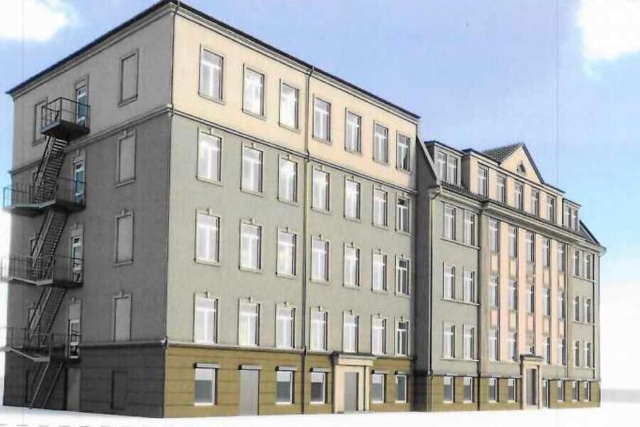 Согласно техзаданию, капремонт предусматривает замену дверных блоков, оконных отливов, водосточной системы, ремонт трещин, восстановление и замену кладки стен, их утепление с последующим оштукатуриванием и окрашиванием, а также выполнение навесной фасадной системы с воздушным зазором и устройство отмостки, входных площадок, входа в техподполье и металлических козырьков.