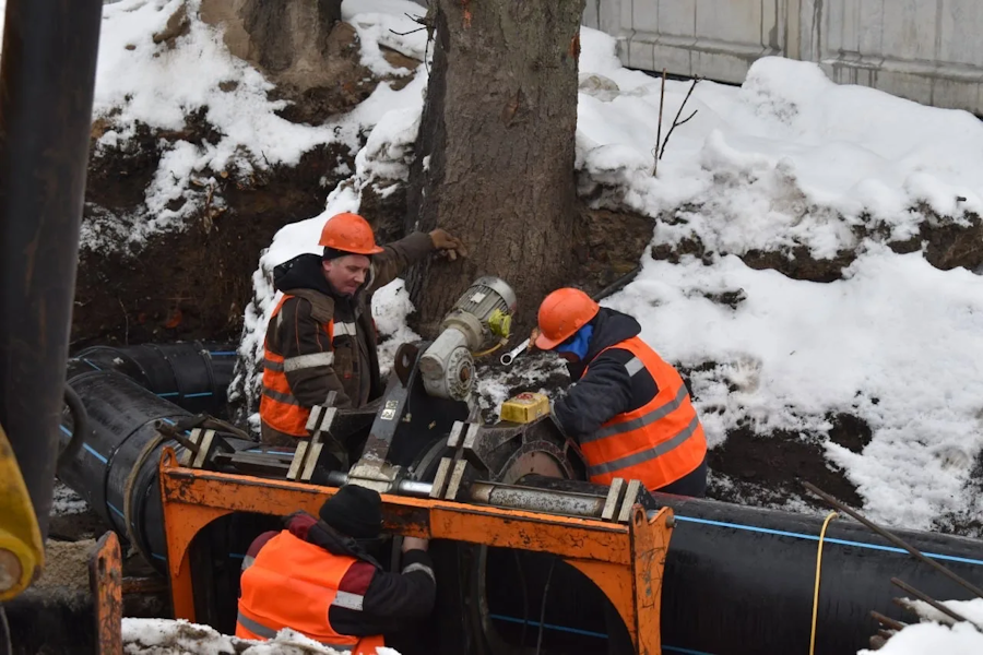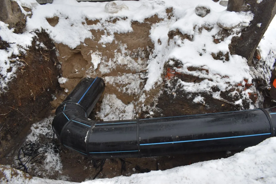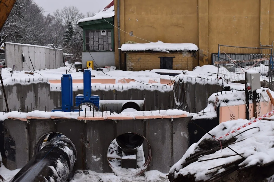 В рамках первого этапа была построена подземная часть КНС, резервуар и колодцы, а также проложены трубы.