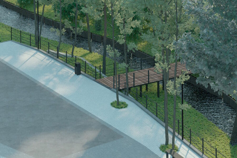 В перечне необходимых работ снос зелёных насаждений, земляные работы, устройство пешеходных дорожек по металлическому каркасу, устройство покрытий, установка малых архитектурных форм, озеленение, монтаж наружного освещения, сетей связи и видеонаблюдения.