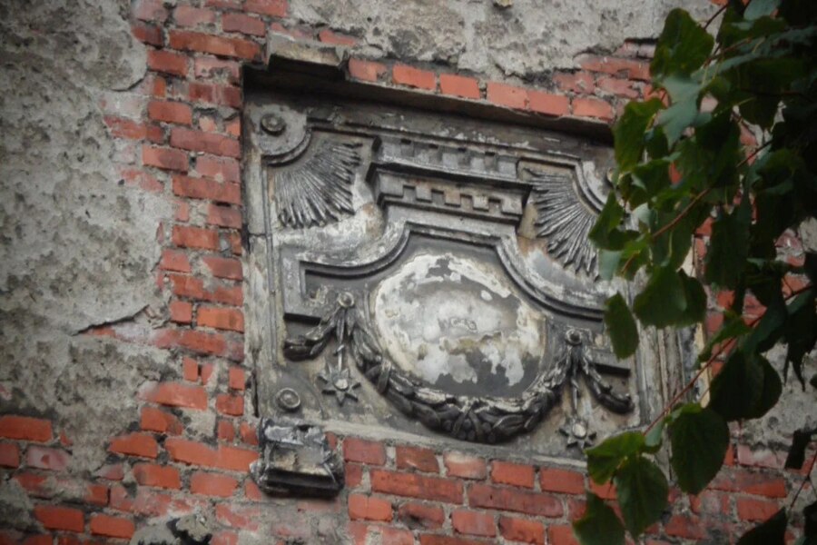Главный фасад дома ни разу не ремонтировался, поэтому декор не успели скрыть под наслоениями поздних штукатурок. На фасаде можно увидеть лавровые венки, лепные панно с гирляндами и гербы.