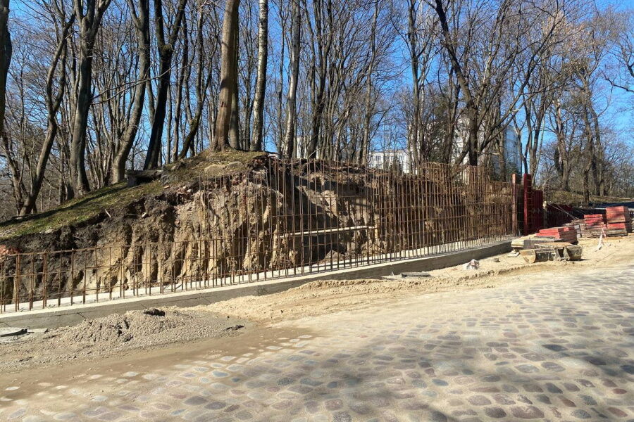 В Калининграде на улице Галицкого подрядчик срыл экскаваторами часть холма Бесселя. В мэрии города «Новому Калининграду» пояснили, что эти работы необходимо было провести для строительства подпорной стенки.