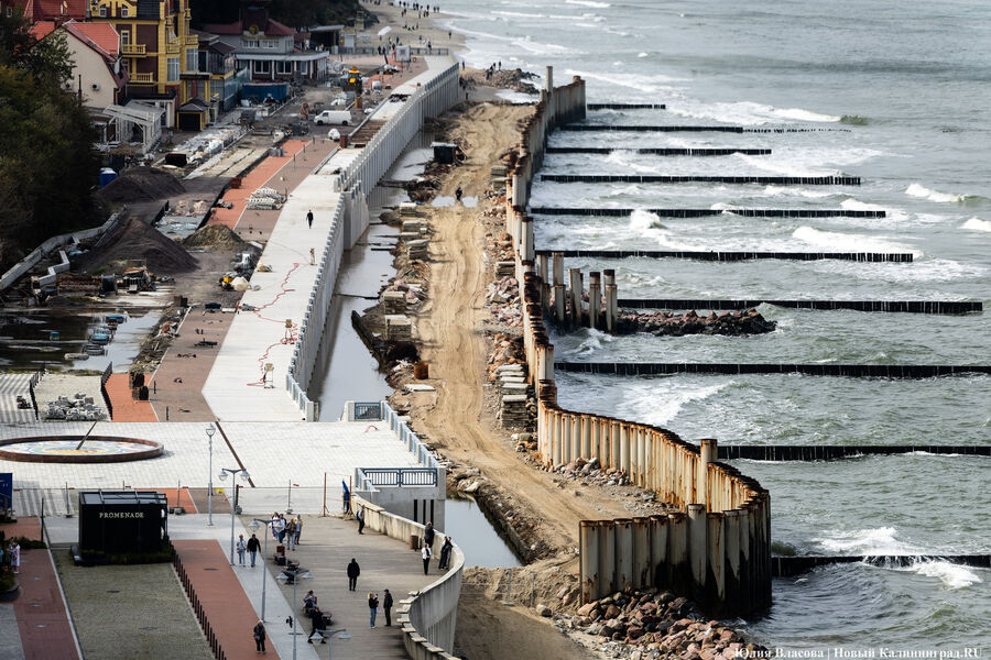 Что касается строительства волноломов, то все мероприятия на протяжении 4,5 км береговой линии планируется завершить до 2029 года. Как объяснили в ведомстве, такая продолжительность работ связана со осложнённым процессом строительства в акватории Балтийского моря — при сильном волнении работы приостанавливаются.