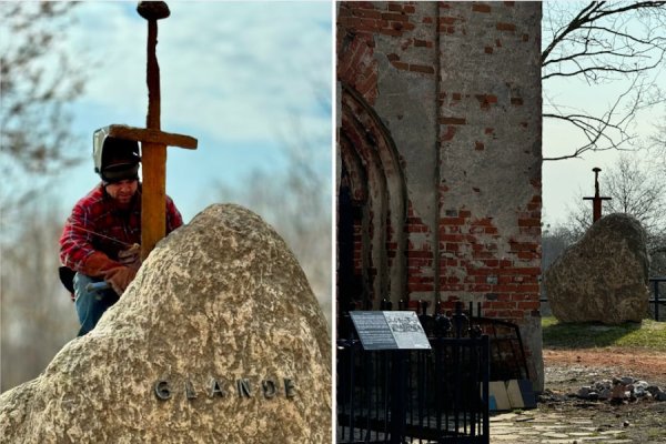 «По „Хронике земли Прусской“ у самбийцев в том восстании, тоже был вождь! Звали его Гланде, — сообщают далее администраторы паблика. — Вот и пришла идея создания мемориала пруссу в виде огромного камня с большим мечом. 10-ти тонный подходящий ледниковый валун гранита мы нашли в карьере под Черняховском.