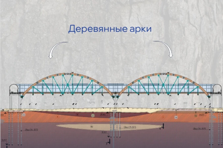 Длина каждой арки составляет 37 метров. Как уточнили в «ВАД», конструкции проходят специальную обработку. «Все деревянные элементы проходят глубокую обработку антисептиком в вакуумных камерах, что гарантирует 50 лет службы», — говорится в сообщении.