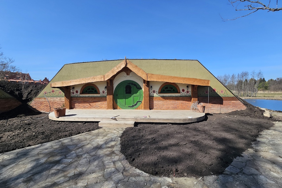 Отметим, что ровно год назад инвесторы продемонстрировали слайды, на которых изображена входная группа со стороны строящейся таверны. По их словам, так место встречи гостей замка должно было выглядеть летом 2025 года.