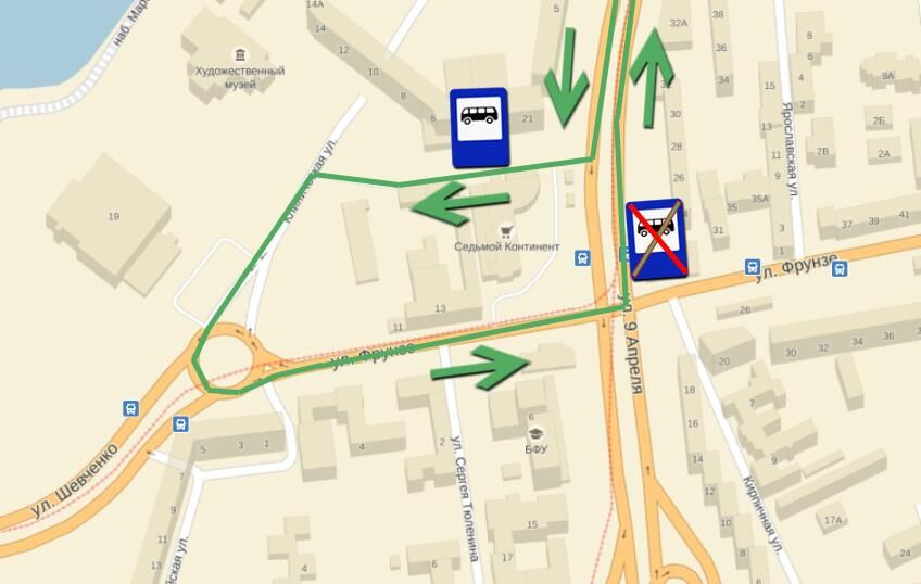 Изменения связаны с повышением пропускной способности при дорожных работах на ул. 9 Апреля. Остановка автобусов и маршрутных такси с ул.9 Апреля на время реконструкции перенесут в район проезда у дома № 17–21 на ул. Фрунзе.