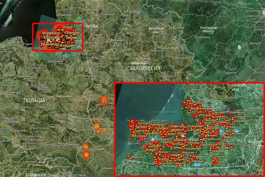 На снимках отмечено, что на территории региона за последние сутки произошло около 70 возгораний. При этом в Литве и Польше не зафиксировано ни одного такого пожара. В Белоруссии у границы с Литвой отмечены около 11 возгораний травы, еще 5 — вблизи границы республики с Польшей. В других регионах России трава почти не горит — на всей территории страны отмечены только два возгорания в республике Хакасия.