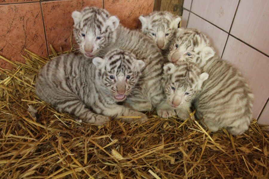 В Клайпедском зоопарке 4-летняя белая тигрица Юрате родила сразу пять тигрят, которые с большой вероятностью попадут в книгу рекордов Литвы. Отец — 3-летний белый тигр Андрюс, приехавший в Клайпеду из Чехии. Об этом в пятницу пишет «Delfi» со ссылкой на представителя зоопарка Клайпеды Расу Велюте.