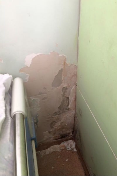 По её словам, ремонт в отделении был проведён некоторое время назад, но, по всей видимости, его сделали с нарушением технологии. «Тут просто скоро вся стена посыпется. Надо, конечно, её переделать», — отметила она.