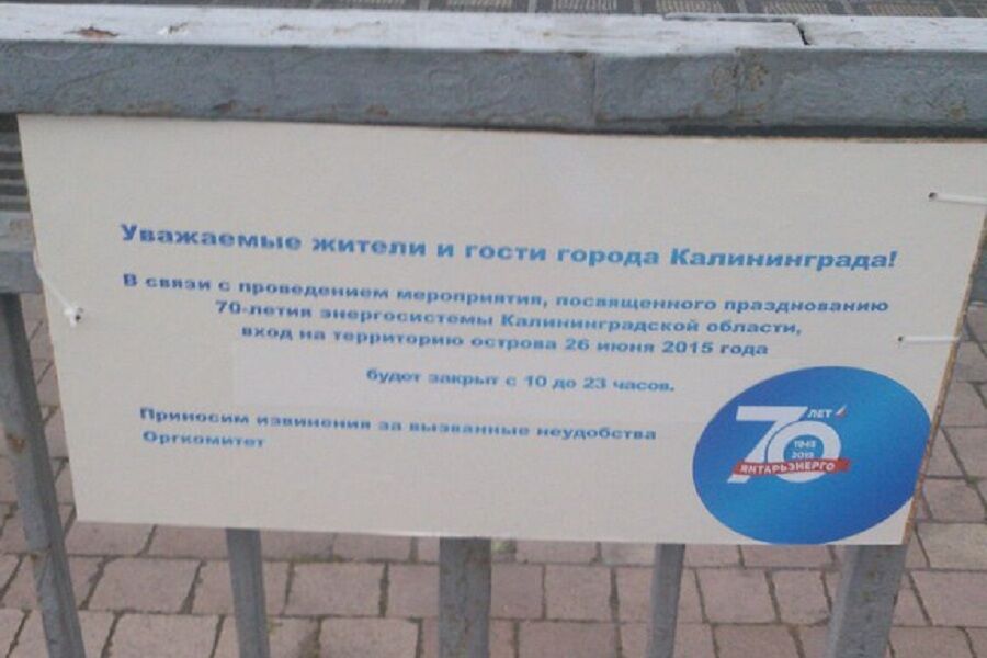 Как следует из размещенных информационных табличек, в связи с праздником Остров будет закрыт до 23:00 пятницы. Накануне там установили шатры и сцену, а также покрасили скамейки, добавила собеседница «Нового Калининграда.Ru».